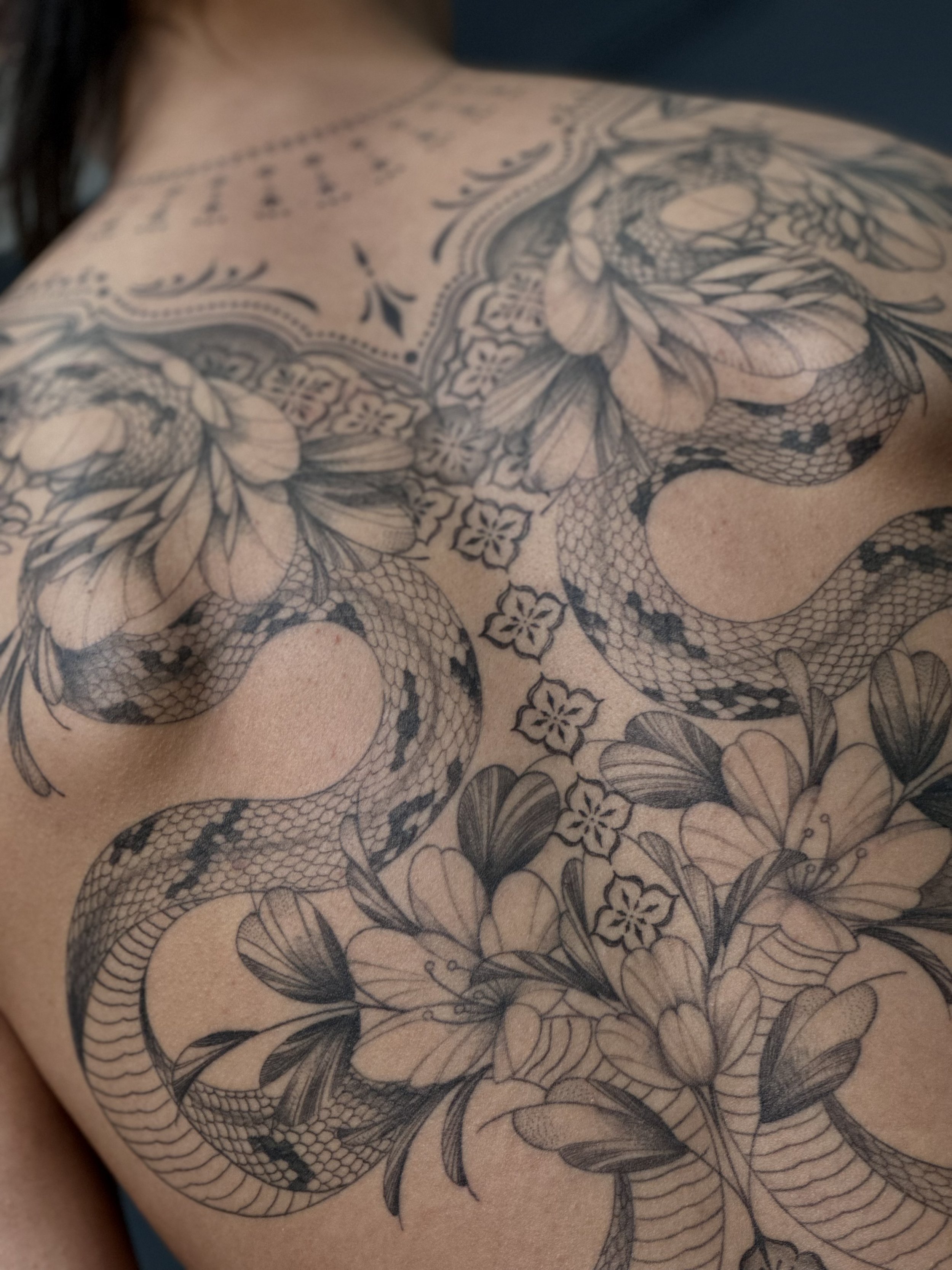 Specializing in intricate ornamental tattoos, I design refined, detail-driven pieces that enhance the natural flow of the body.